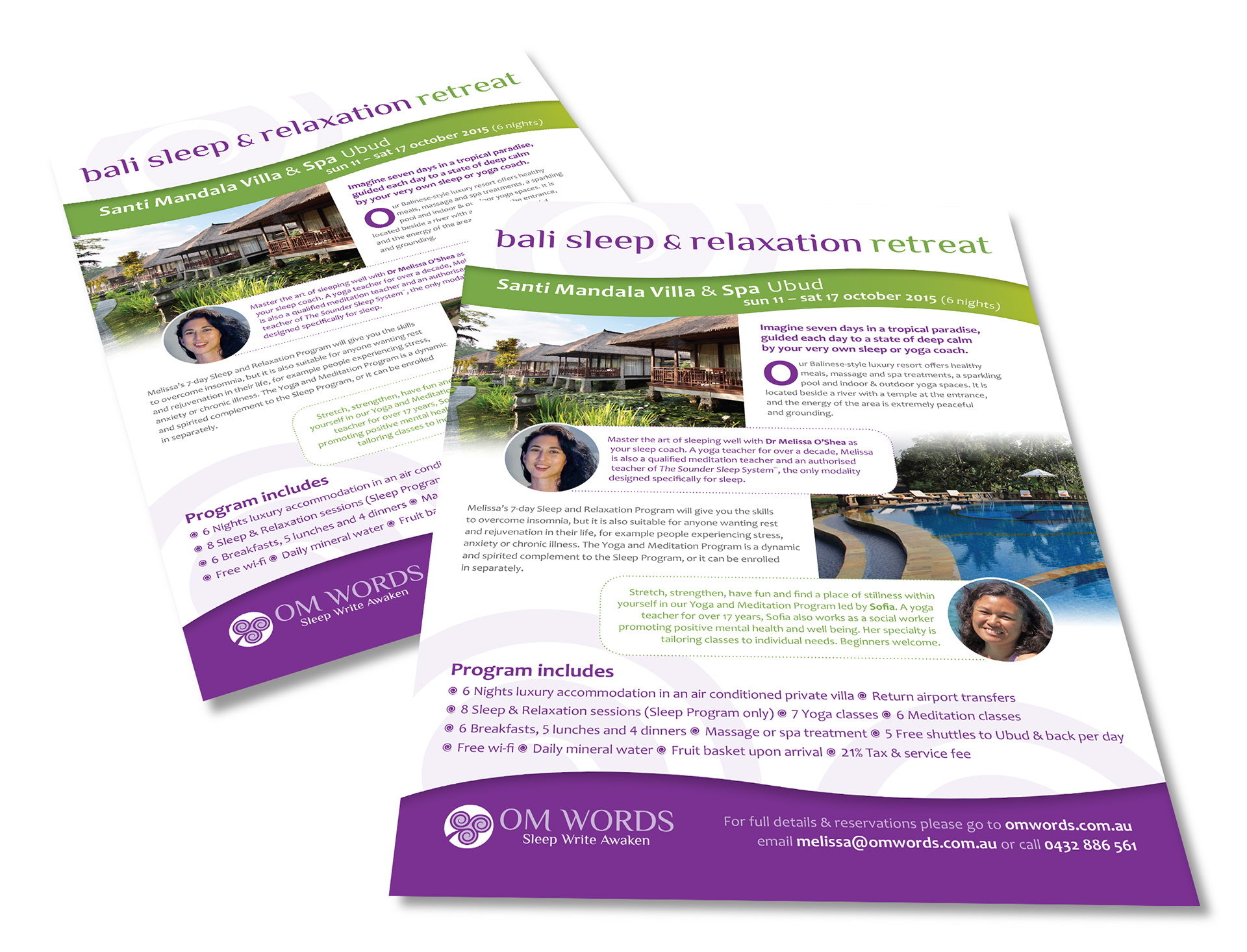 Flyer advertising sleep & relaxation-focussed yoga retreat, which can be printed and/or distributed in PDF format.